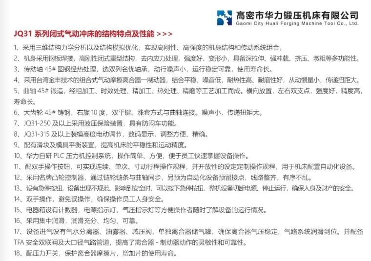 簡介:高密市華力鍛壓機(jī)床有限公司專業(yè)研發(fā)、設(shè)計(jì)、制造鍛壓機(jī)械產(chǎn)品,主導(dǎo)產(chǎn)品:高密鍛壓、高密沖床、國標(biāo)沖床、重型沖床等系列沖床機(jī)械。先進(jìn)的生產(chǎn)設(shè)備與成熟的工藝,先進(jìn)的技術(shù)與人性的科學(xué)管理方式,為用戶提供高質(zhì)量的產(chǎn)品。電話:0536-2887477