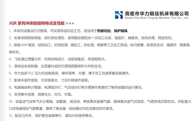 簡介:高密市華力鍛壓機(jī)床有限公司專業(yè)研發(fā)、設(shè)計(jì)、制造鍛壓機(jī)械產(chǎn)品,主導(dǎo)產(chǎn)品:高密鍛壓、高密沖床、國標(biāo)沖床、重型沖床等系列沖床機(jī)械。先進(jìn)的生產(chǎn)設(shè)備與成熟的工藝,先進(jìn)的技術(shù)與人性的科學(xué)管理方式,為用戶提供高質(zhì)量的產(chǎn)品。電話:0536-2887477